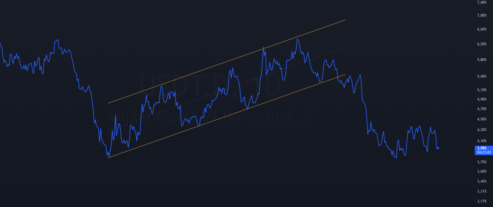 Neste momento, temos a dominância com quedas consistentes, mostrando uma expansão das altcoins frente ao Bitcoin. Momento propício para se posicionar em bons projetos.