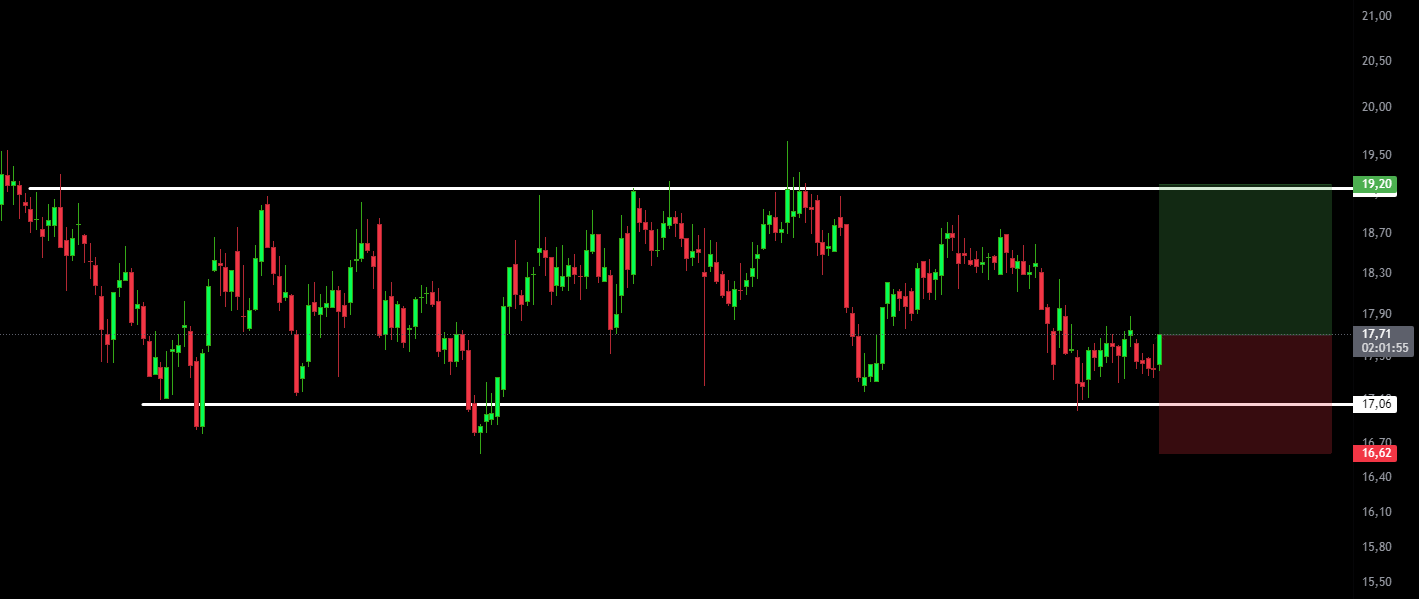 O ativo segue em um range lateralizado, entre suporte e resistência. Esta formação vem acontecendo desde o mês de setembro de 2023, o que mostra uma estabilidade na cotação de suas ações. Apesar de ser uma empresa diretamente correlacionada a commodities agrícolas, a mesma se manteve estável em meio aos cenários adversos de preços dos grãos. Neste momento, temos o preço proximo a suporte do gráfico diário indicando possível retorno a zona dos R$ 19,00 onde encontra-se o alvo.