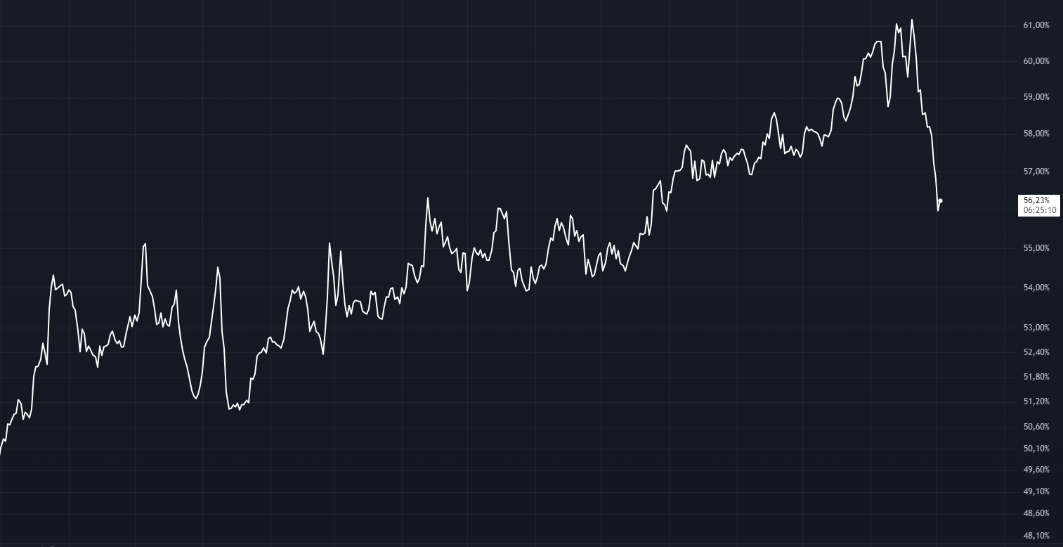 Com as recentes entradas de capital no mercado cripto, estamos vivenciando um momento em que os investidores estão com apetite ao risco a diversos novos projetos. Mas não apenas isso, as altcoins mais bem estabelecidas estão ganhando espaço e isso vem refletindo na queda da dominância do Bitcoin. Caso você não saiba, a dominância do Bitcoin representa a porcentagem do valor de mercado do Bitcoin em relação ao valor de mercado total de todas as criptomoedas. Ela é usada para medir a influência e o peso do Bitcoin no mercado cripto. Se a dominância aumenta, isso indica que o Bitcoin está superando outras criptos em desempenho ou interesse. Se diminui, altcoins estão ganhando destaque.