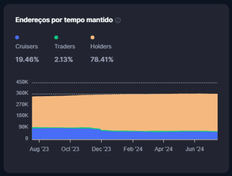 *Endereços por tempo de permanência dos tokens. Sendo os traders os que mantém por menor tempo, e holders os que mantém por pelo menos 1 ano os tokens em carteira.